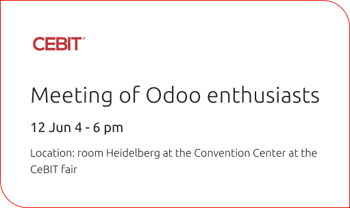 Just like the digital transformation vastly affects the society, companies are progressing there, too . One example for successful digitization is Wikimedia Germany, which uses Odoo as an embedded employee system. Furthermore the new ITIS AG Odoo enhanced Community will help you in improving business processes. Here you can take a look: CeBIT in hall 27, stand F82.On June 12th at 16:00 in Room Heidelberg you can see the topics live at an event at the CeBIT conference center! See: