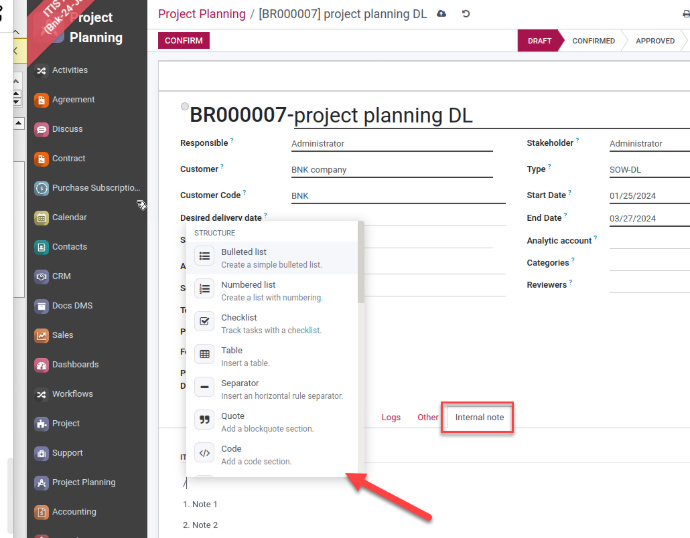 Project planning isn’t always client-facing — some conversations are for your team only. With the Internal Notes field in ITISeasy.business Forecast, you can store: