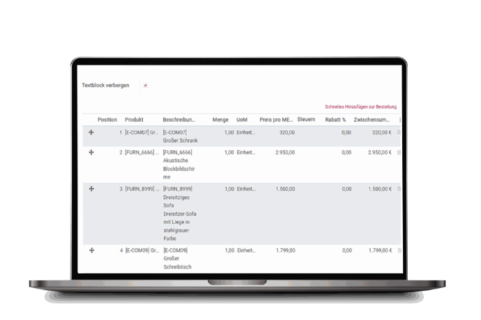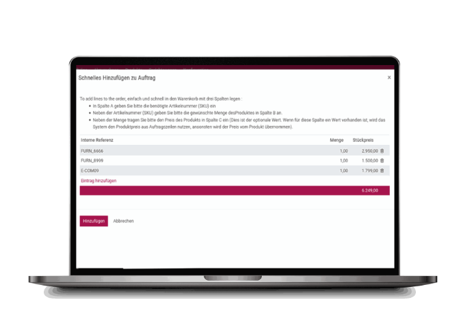 This module is ideal for B2B companies with high-volume product catalogs, i nternal sales teams processing bulk orders, for E-Commerce managers, handling offline orders and admins responsible for quick contract entries.