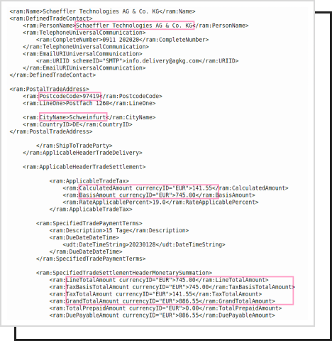 When you receive a supplier invoice in the Factur-X / ZUGFeRD format, ITISeasy.business extracts