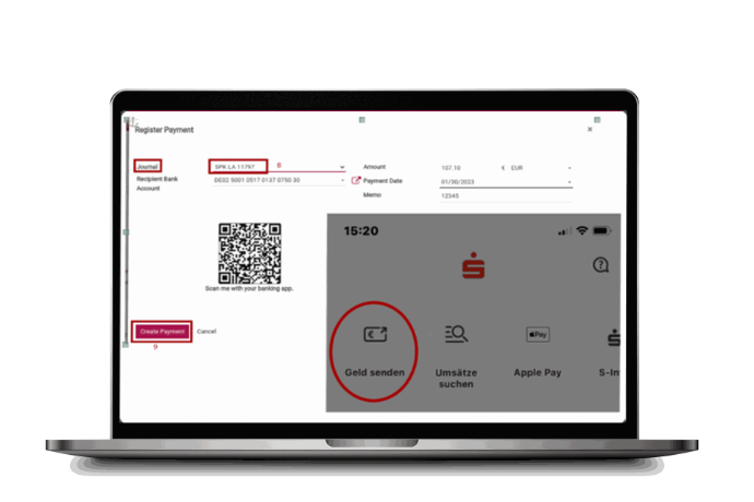 Using your mobile banking app (like Sparkasse), click "Send Money"