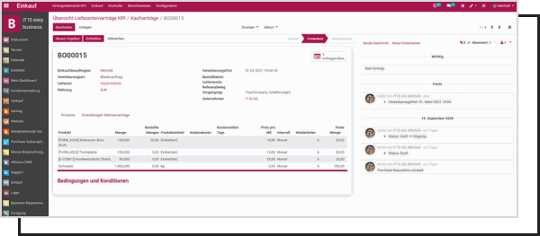 Built for efficiency and precision, ITISeasy.purchase agreement integrates seamlessly with your Odoo environment.